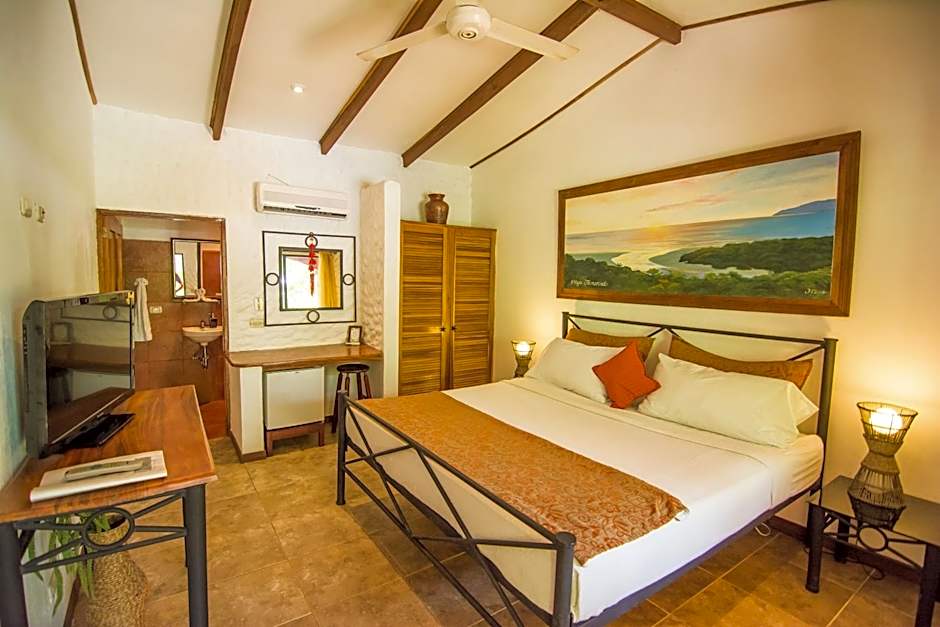 This air-conditioned room features elegant rustic-style décor and free Wi-Fi. It feartures 1 king bed, ceiling fan, mini fridge, safety box, cable TV and private bathroom with a hot water shower. All rooms have a private furnished patio with views of the gardens or pool.